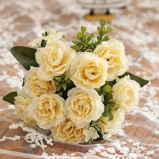 Hovebeaty Artificial Peony Silk Flowers Bouquet Home Wedding Decoration Light Yellow