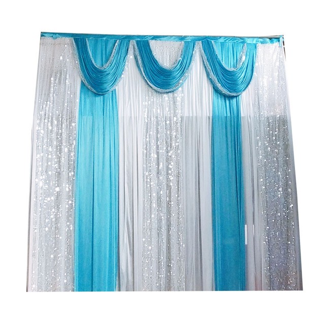 Party Drapes Swag Silk Fabric Decoration Blue Three Fold Wedding Stage Backdrop