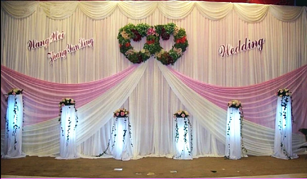 20ft 10ft White Pink Wedding Backdrop Curtain With Swag Wedding
